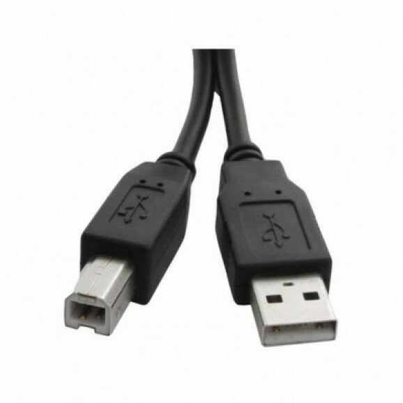 Cabo USB com conectores Macho "A" e Macho "B" para ligação de periféricos como impressoras, scanners e outros.